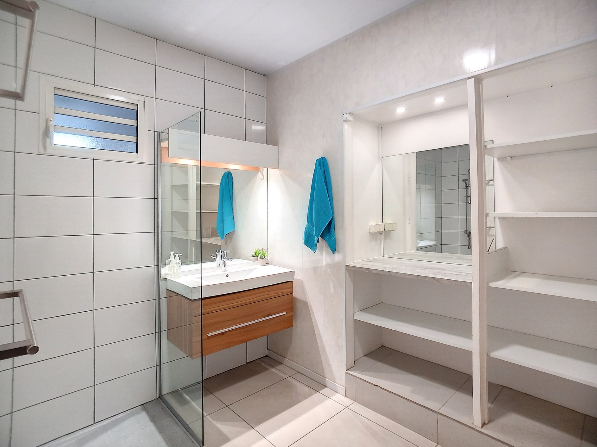 La villa dispose d'un agréable séjour lumineux, une cuisine indépendante équipée avec plusieurs rangements, un sanitaire, une belle salle d'eau (entièrement rénovée), trois grandes chambres climatisées avec volets et rangements, une chambre climatisée avec volet pouvant également faire office de bureau.