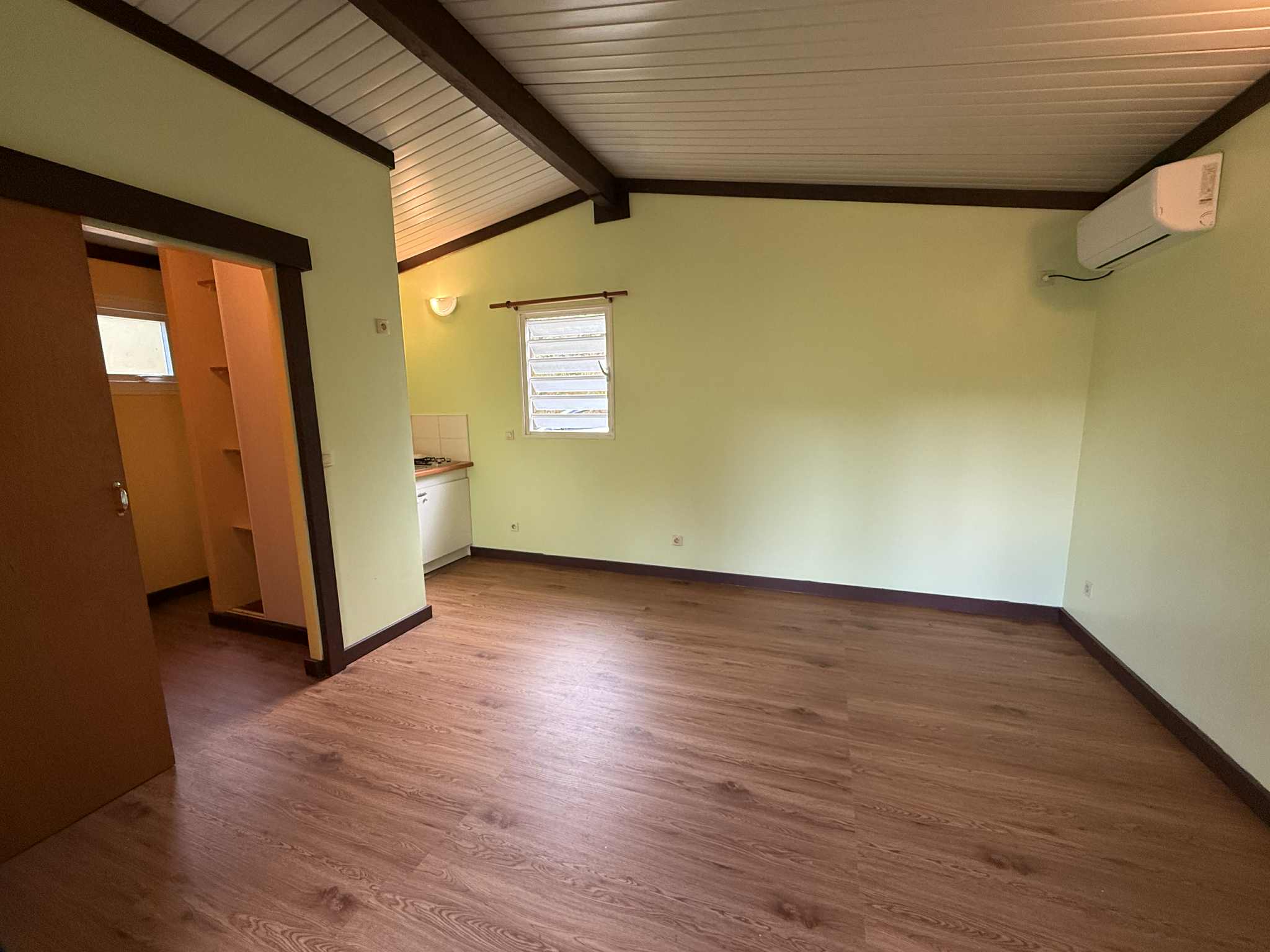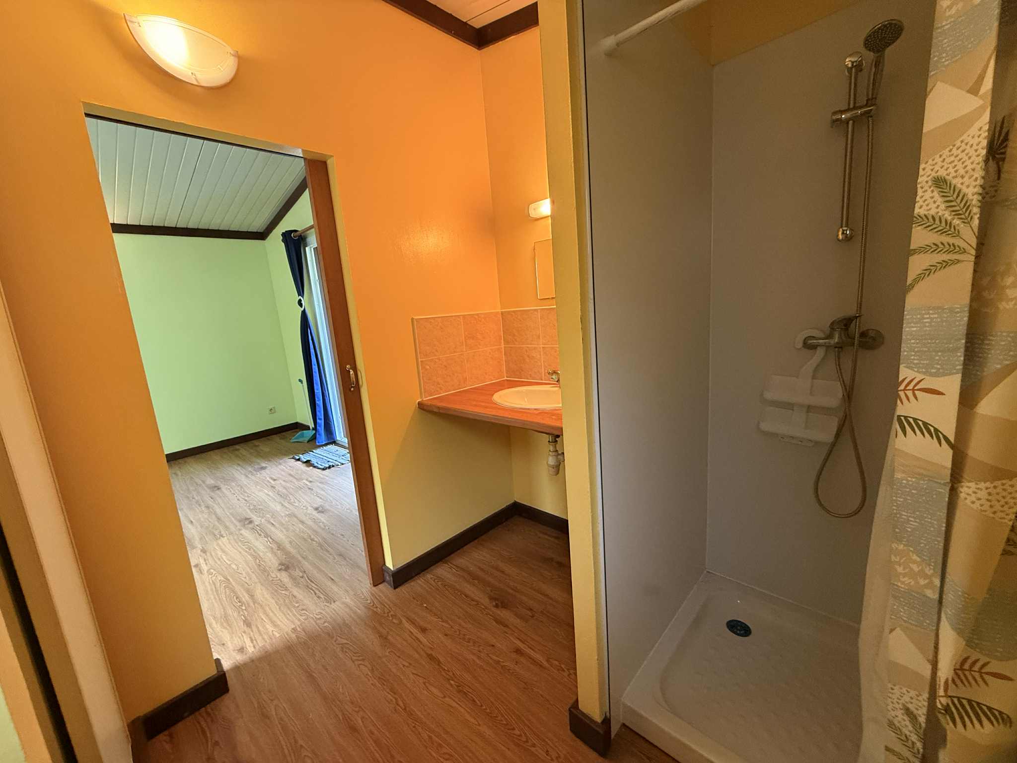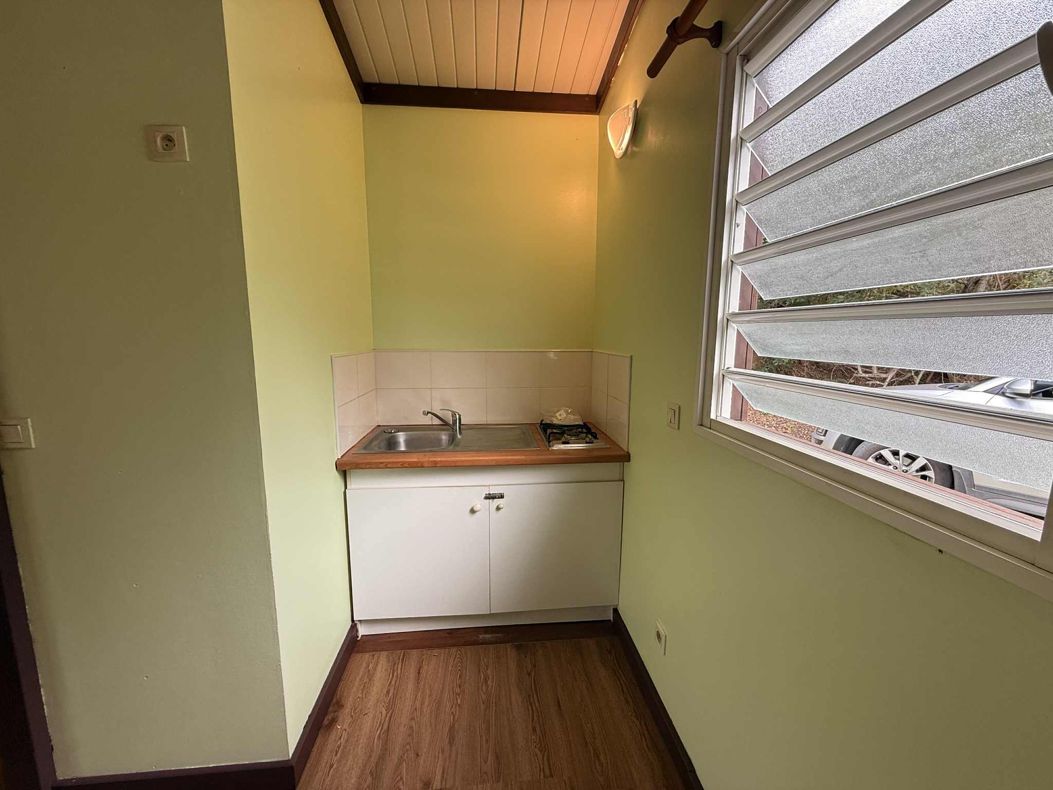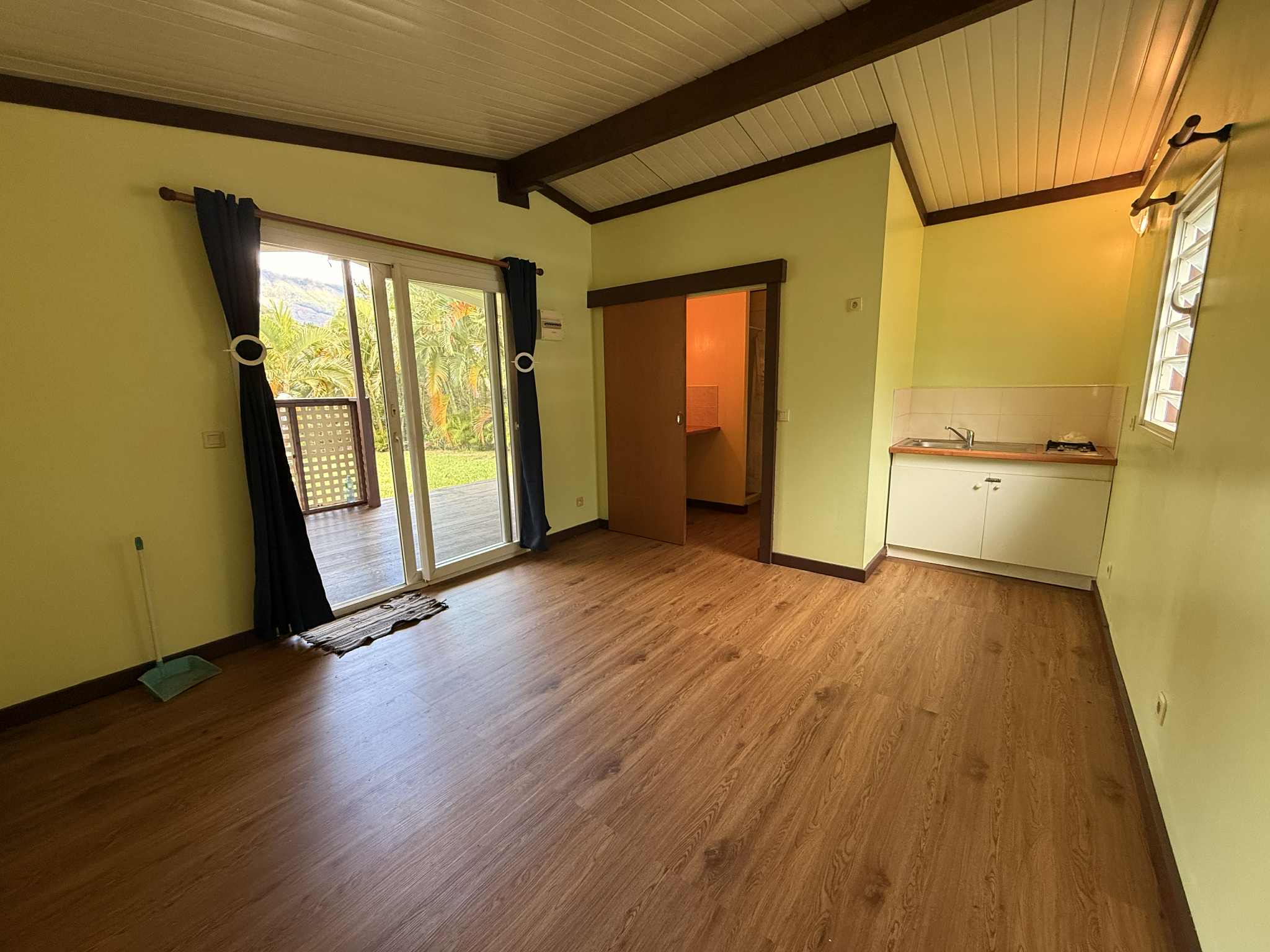 À découvrir, charmant bungalow F1 indépendant situé sur la RT1, juste après la station Totale. Niché dans un écrin de verdure, il offre une jolie vue et un cadre paisible.