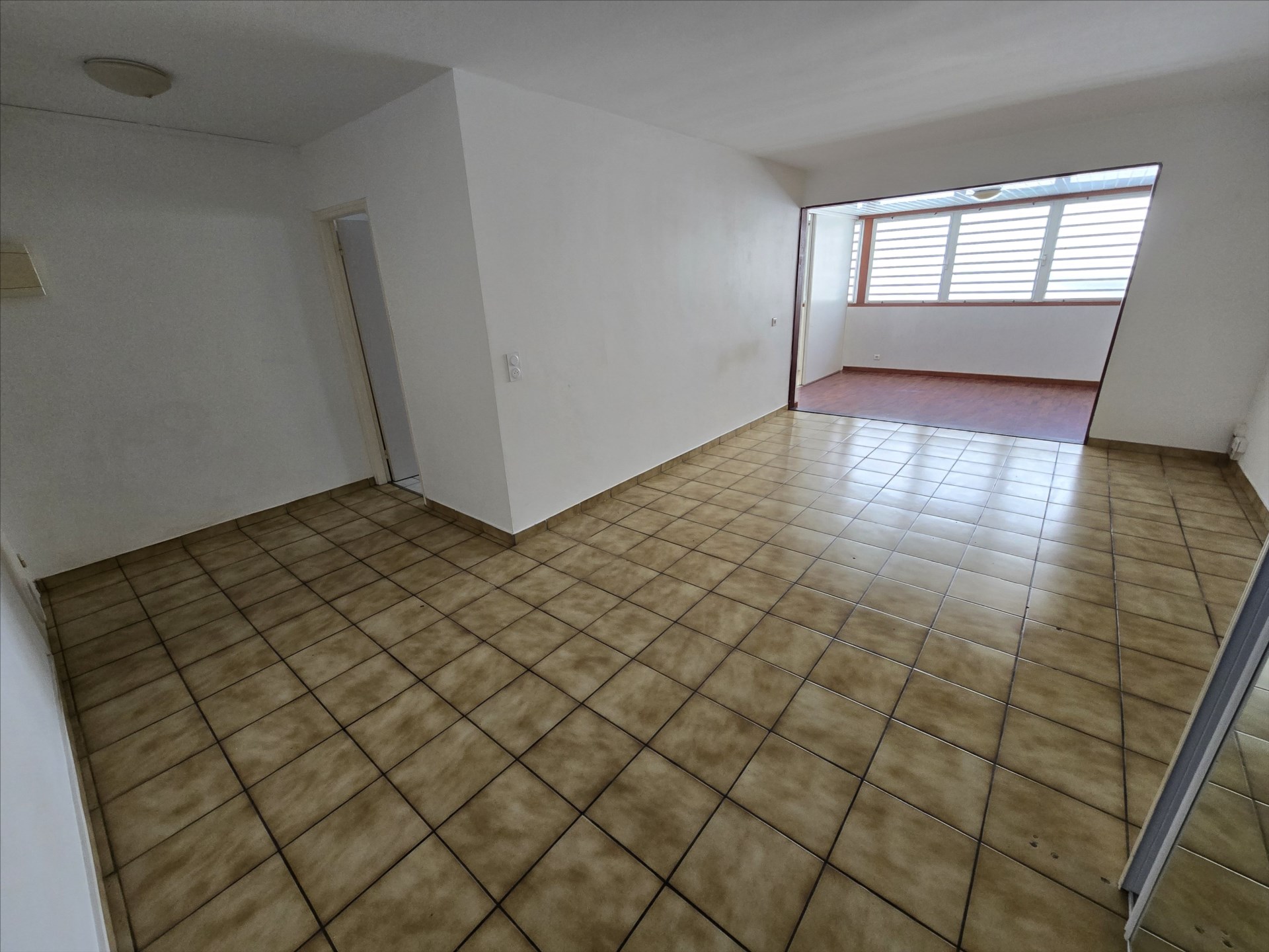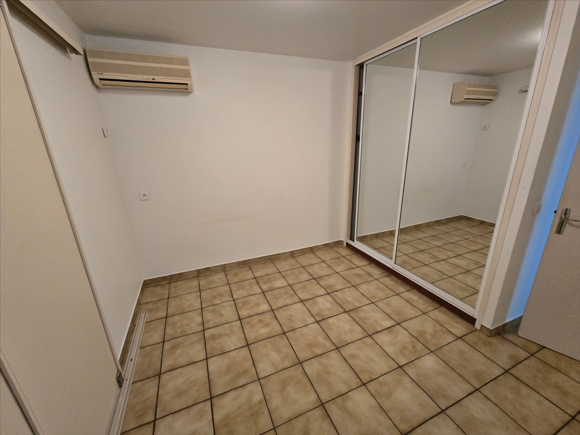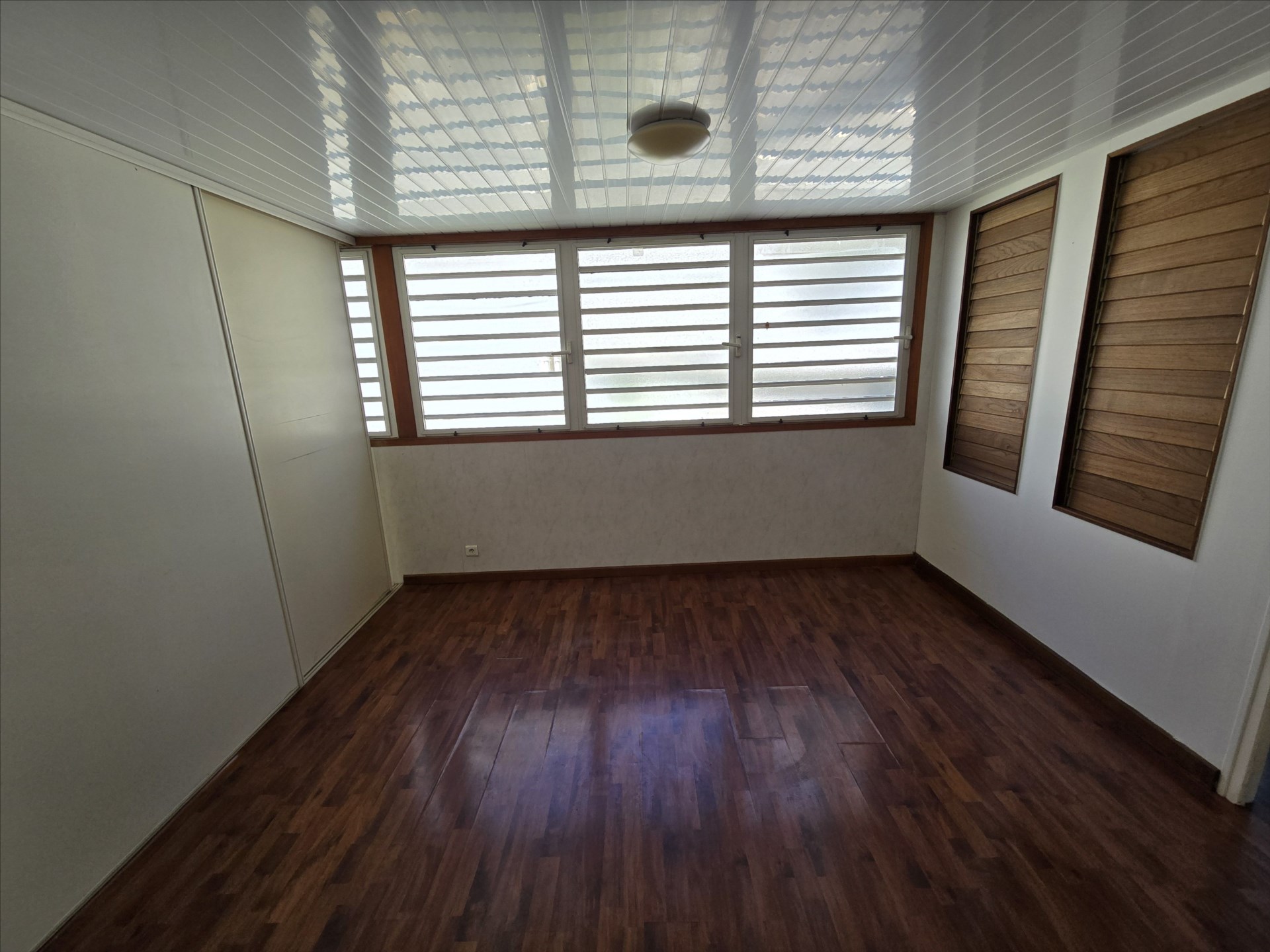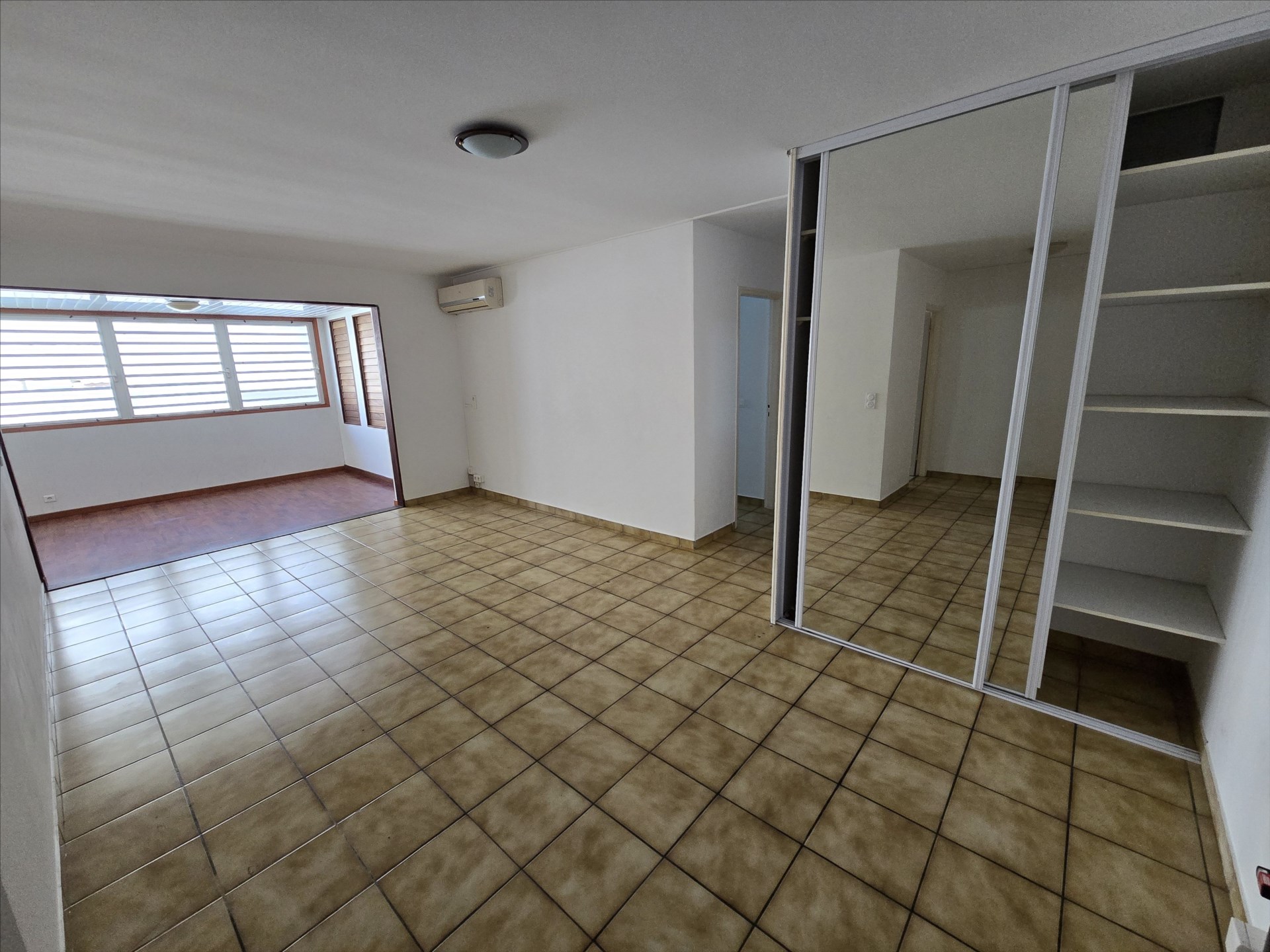 F2 + bureau de 76,68m², calme, grand séjour avec terrasse fermée, cusine séparée, buanderie, chambre et bureau avec placard, salle d'eau, wc, climatisation, 1er étage sans ascenseur, parking couvert! Prévoir rénovations. Idéal investissement ou premier achat. Libre.