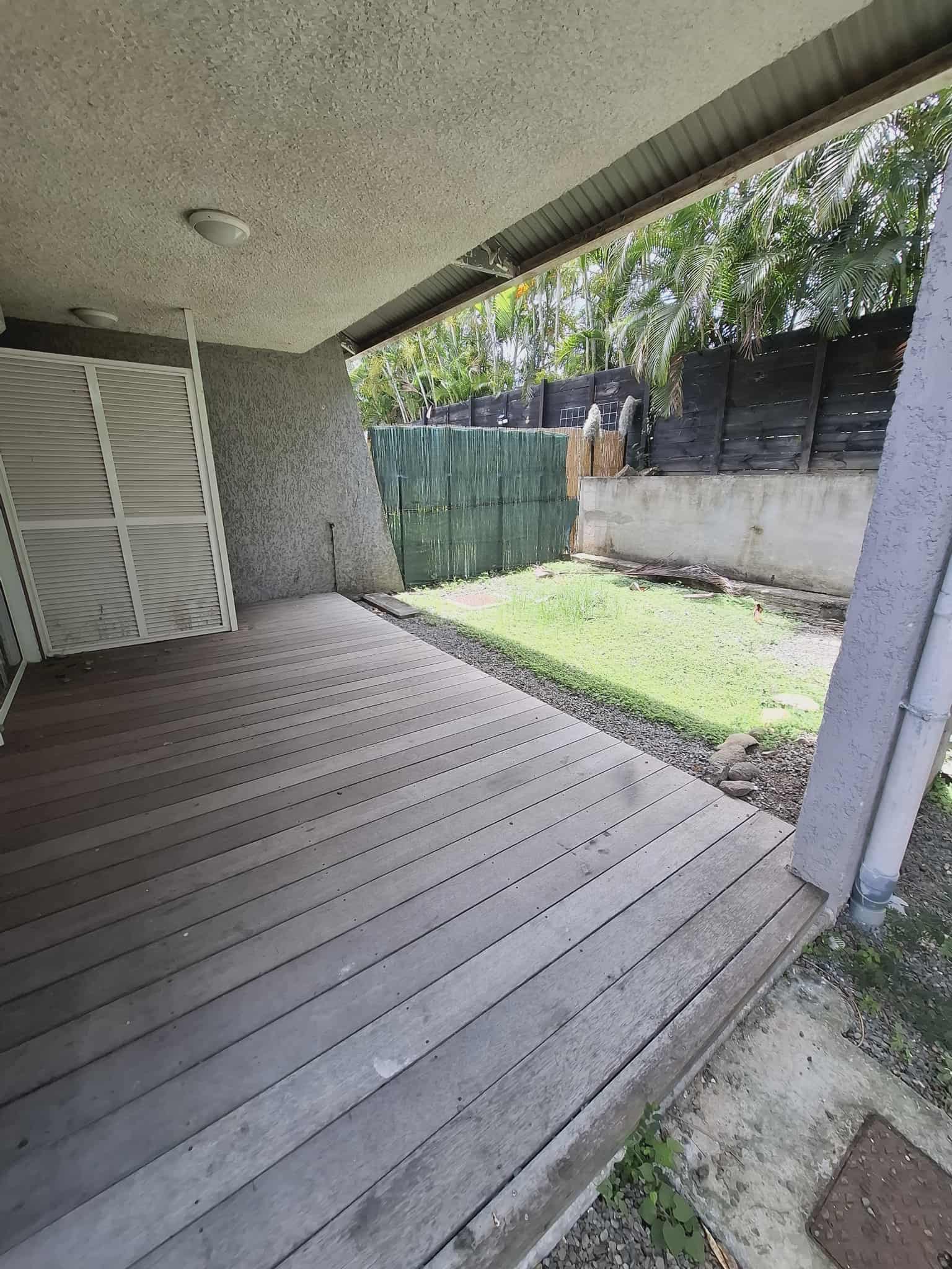 Une cuisine équipée ouverte sur un spacieux séjour, un dégagement sous l'escalier, une terrasse couverte de + de 13 m², une buanderie et un jardinet.