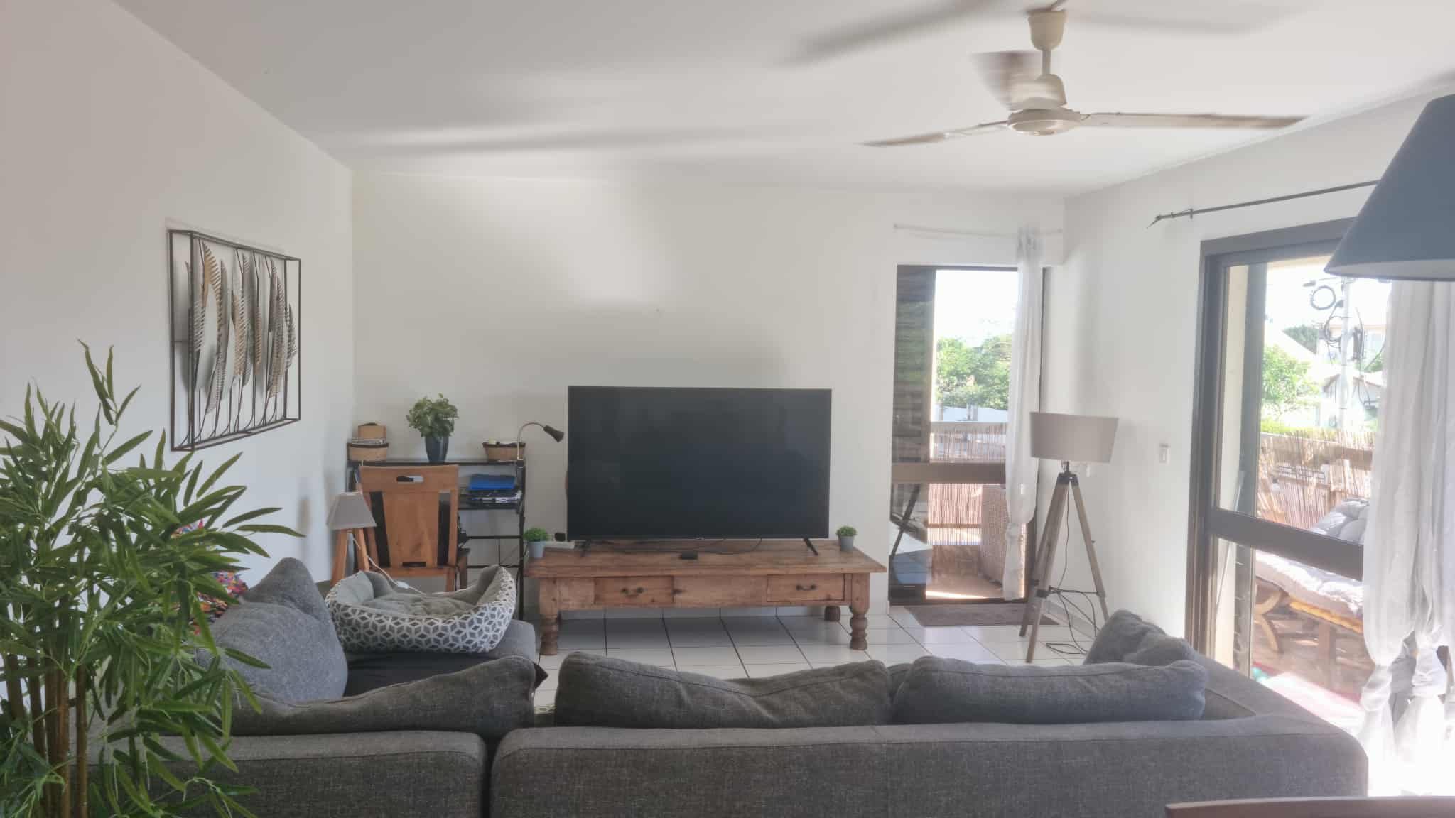 Résidence Marie Christine appartement de type F3 situé au 1er étage d'une petite résidence calme et sécurisée,une cuisine équipée, une grande buanderie, un salon / séjour, 2 chambres climatisées avec placards, une salle de bain avec baignoire, un wc indépendant, une terrasse couverte et un carport fermé. Eau comprise dans les charges.