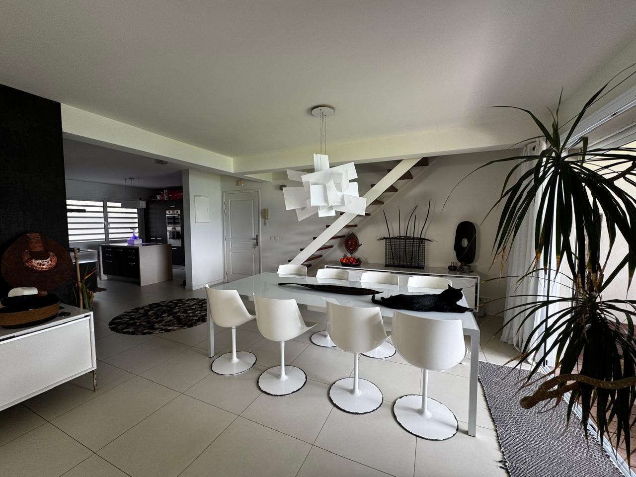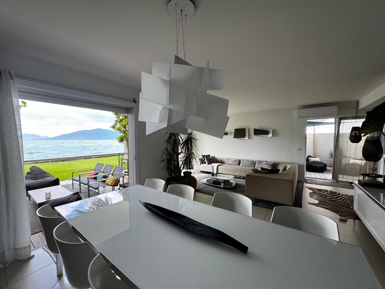 Emplacement exceptionnel pour cet appartement F5 duplex situé à Ouémo en bord de mer d'une surface habiatble d'environ 150m2 avec 4 places de stationnement dont 2 couvertes et deux celliers. Grande terrasse couverte avec jardin. A voir absolument.