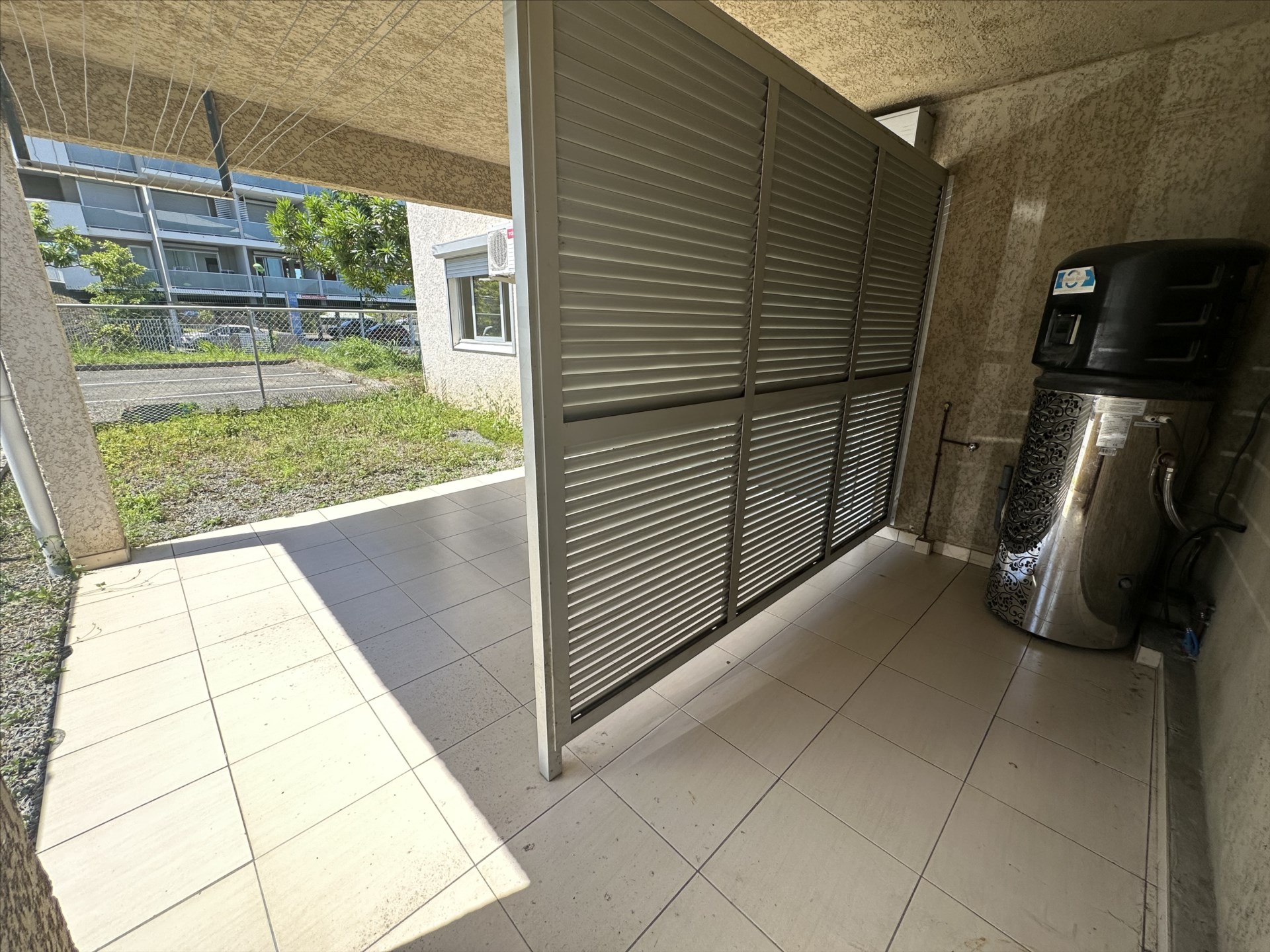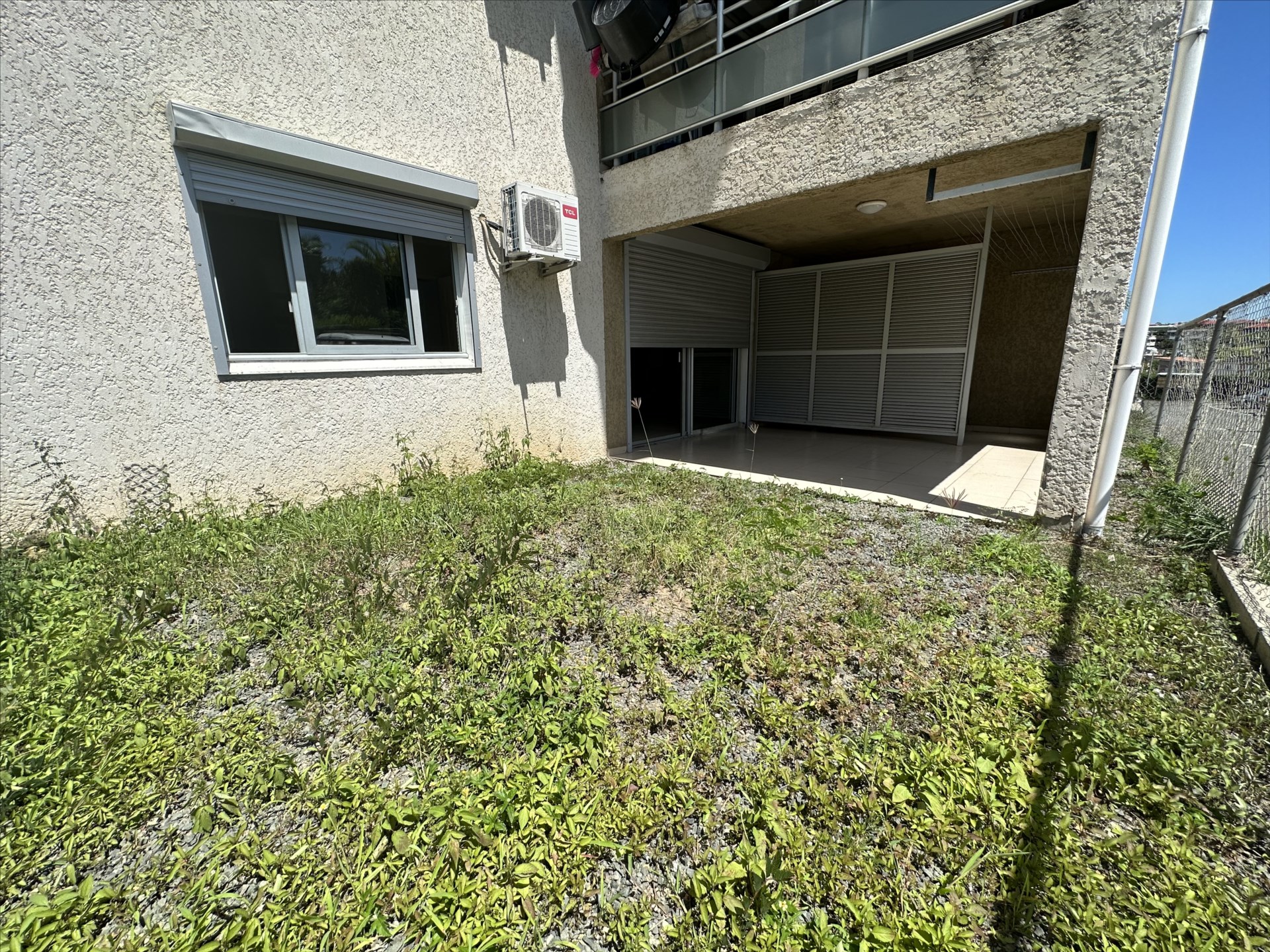 Résidence récente, appartement de type F2 en RDJ comprenant : une cuisine équipée ouverte sur séjour, un dégagement, une chambre avec placard, climatisation et volet roulant, une SDE, un wc indépendant, une terrasse couverte, une buanderie, un jardinet et une place de PKG sécurisée.