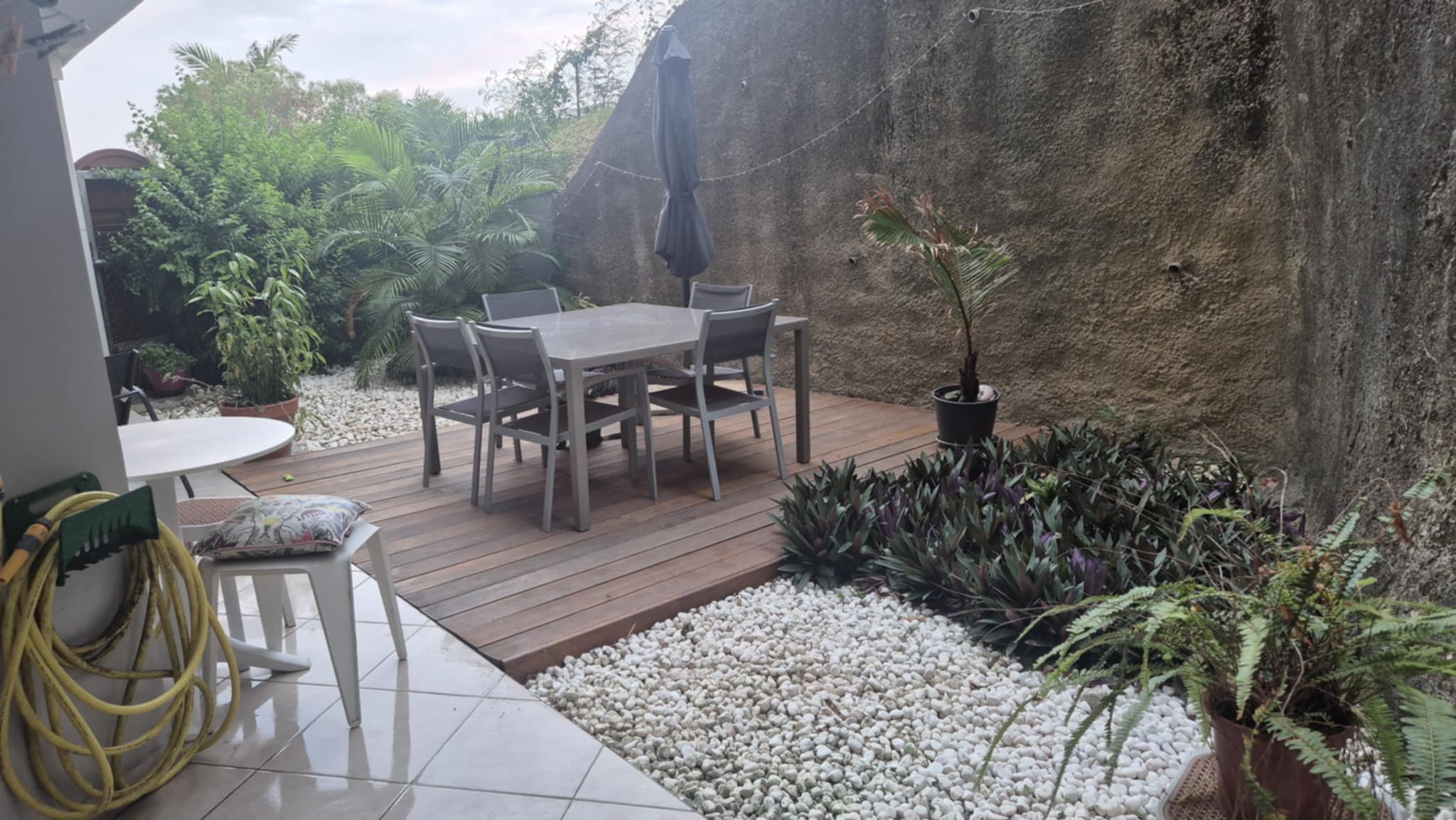 Mont Vénus : Très bel appartement F2 en rez de jardin, il est composé d'une entrée desservant un wc séparé, une buanderie, pour finir sur un espace cuisine semi équipée et aménagée ainsi qu'un salon. Dans la partie, une chambre climatisée avec dressing et salle de bain séparés. Une terrasse avec jardin (+ espace deck). 1 cellier et 1 parking aérien.