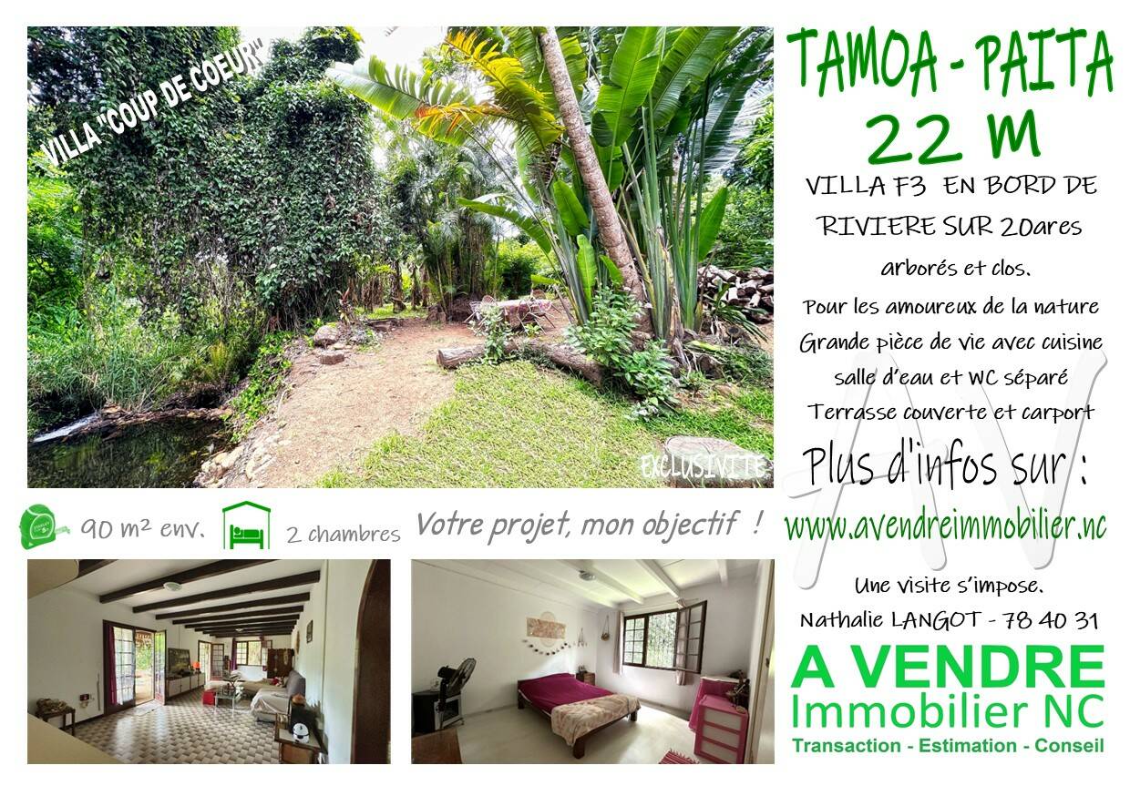 22M – VILLA F3 EN BORD DE RIVIERE SUR 20ARES A LA TAMOA – AMOUREUX DE LA NATURE. Découvrez cette villa F3 en parpaing corail, située sur un terrain plat de 20 ares en bord de la rivière Nennou, idéale pour les passionnés de nature. Spacieuse et accueillante, elle dispose d’un salon lumineux avec cuisine ouverte sur une terrasse couverte, parfaite pour recevoir.