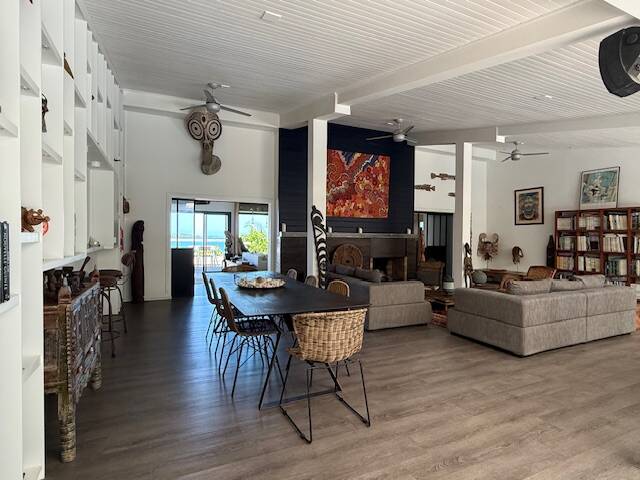 • un séjour/SAM avec cheminée donnant sur un deck de 80 m², idéal pour recevoir vos amis