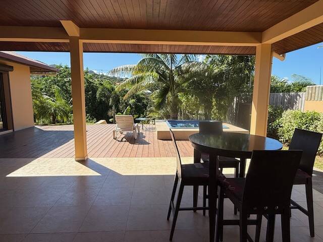 • un vaste séjour et salle à manger donnant sur une belle terrasse couverte et un deck